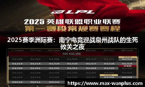 2025赛季职业联赛即将迎来一场备受瞩目的对决,嘉兴战队与中山战队的复仇战之夜将成为球迷们热议的焦点。两支战队在过去的交锋中积累了不少恩怨,尤其是中山战队在上赛季的失利让嘉兴战队倍感振奋。本场比赛不仅是技术的较量,更是心理的博弈。球迷们期待着这场比赛能带来精彩的瞬间和激烈的对抗,见证两队在赛场上的荣耀与梦想。